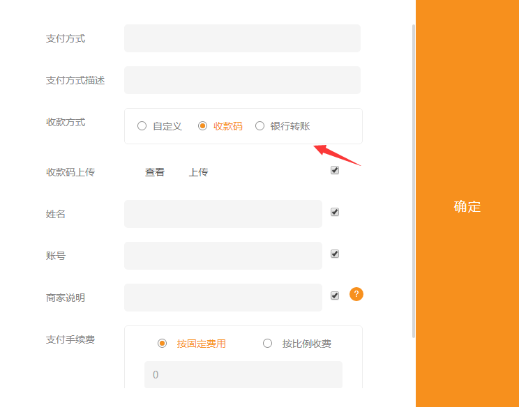 收款码方式:管理员可以上传微信或者支付宝的收款码,这样在提交订单的时候,用户可以扫描收款码付钱。会出现在用户提交订单之后的页面